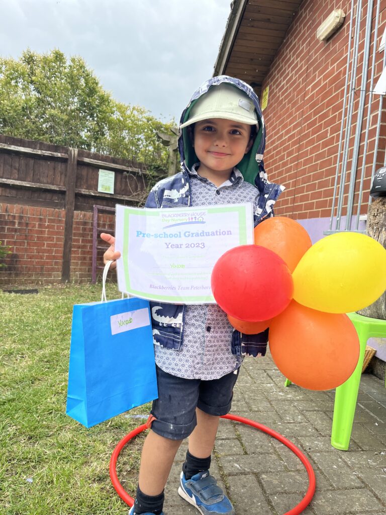 The children enjoyed graduation parties where the parents have been able to join us to celebrate their child’s time at Blackberries Childcare Group. Many activities took place, as well as an awards ceremony and party food was enjoyed by all.