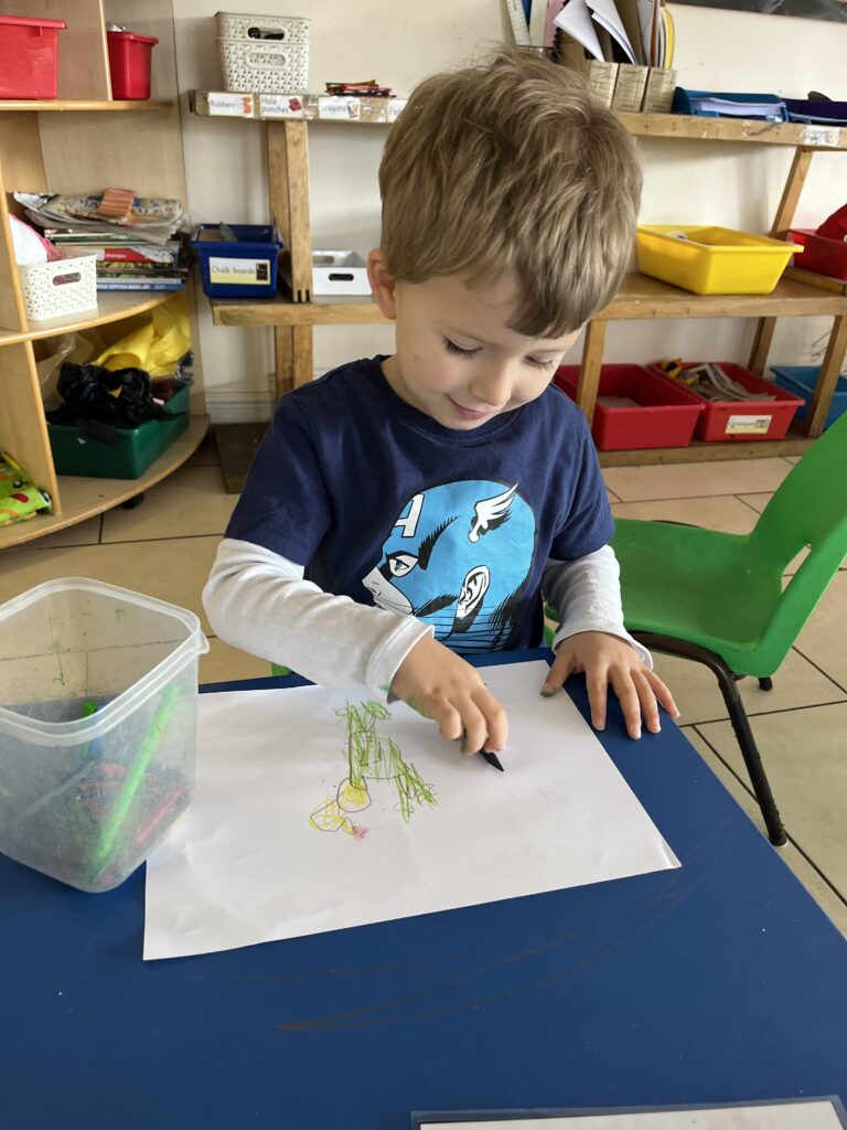 Our Pre-School children have been learning about summer and talking about their trips to the beach with their family and friends. Some of the children shared how they like to build sandcastles at the beach and dip their toes in the water. A variety of artwork has been created using different media.