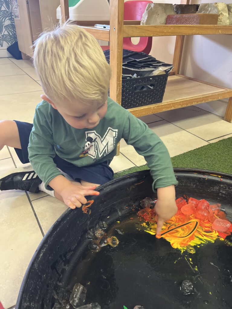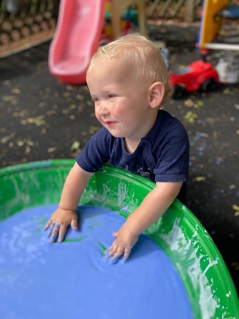 Our Babies have been following the topic ‘the sun has got his hat on’, looking at holidays, the sun, and all things summer. A variety of sensory trays have been created and explored with a lot of water play.