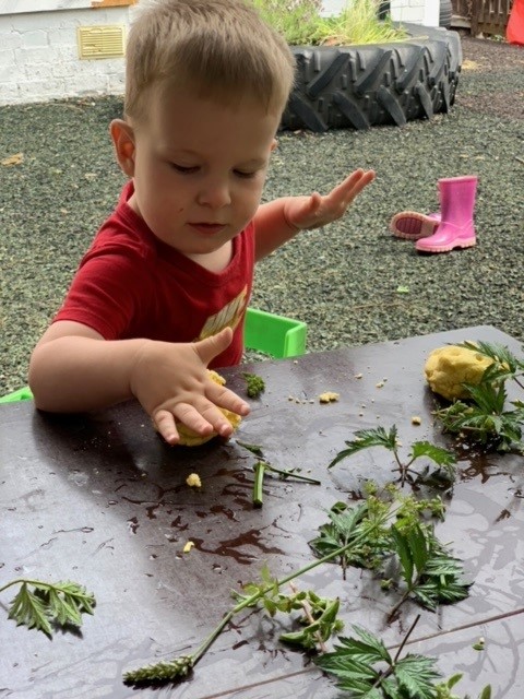 This has been extended with colour mixing and play with colourful waters. Playdough has been a favourite amongst toddlers and a variety of colours, smells, and textures, such as herbs and flowers have been incorporated. Yoga sessions have taken place where the children have learnt different moves and they have practised these throughout their day at nursery.