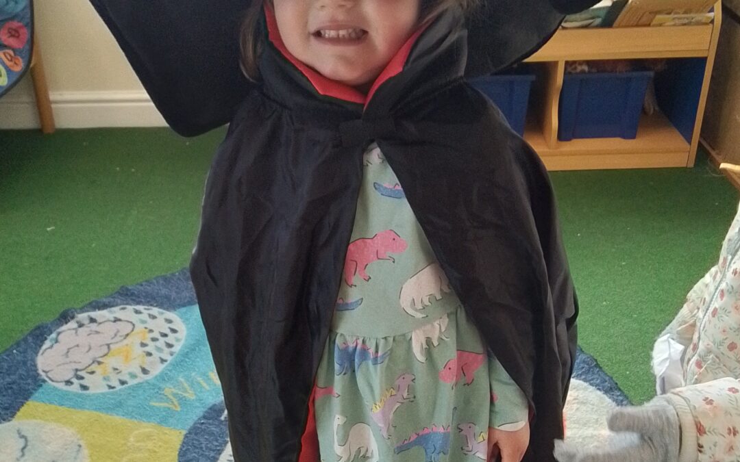 This month the children have been engaging well with the themes of Autumn, they have had the opportunity to explore different sensory trays involving leaves, rice, and conkers, and they have also been able to make their own Autumn tree using the playdough and leaves, this activity was carried out as a group, so they all had the opportunity to add their own ideas, and debate with their peers. As we moved onto our theme of Halloween, the children were very excited about the dressing up, they have been dressing as witches and pirates, this has sparked a lot of conversation and discussions between the children, and it has also enhanced some of the imaginative play we have been seeing within the room.