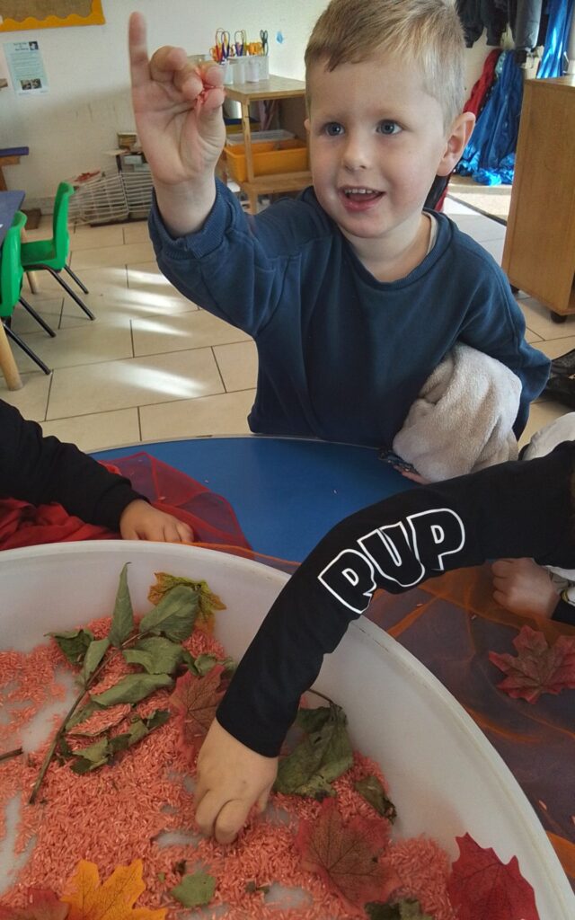 The children have been looking at different types of emotions using emojis, they have been able to identify the main emotions, including, happy, sad, and angry. Throughout the month the children have been looking at Autumn and talking about the different colours that we see during this time of year. The children have enjoyed using the paints to make their own Autumn leaves, and they have also spent a lot of time in the gardens exploring their natural surroundings.